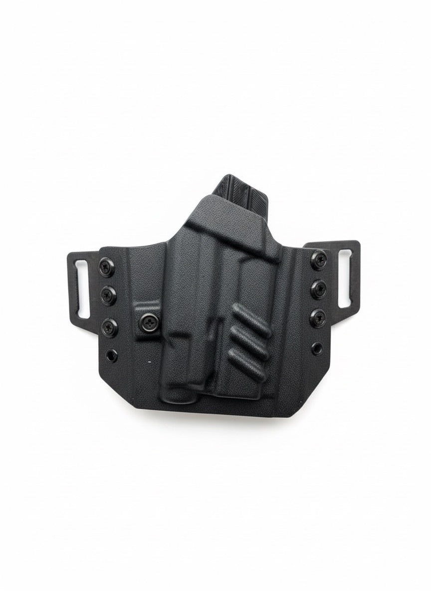 The Outrigger OWB uses a dedicated pancake profile with dual belt loops to pull the gun close and distribute weight evenly for all‑day wear. You can choose from various belt loop options to match your belt width and preferred ride height/cant, giving you a dialed‑in setup for concealed carry, range work, or duty use.